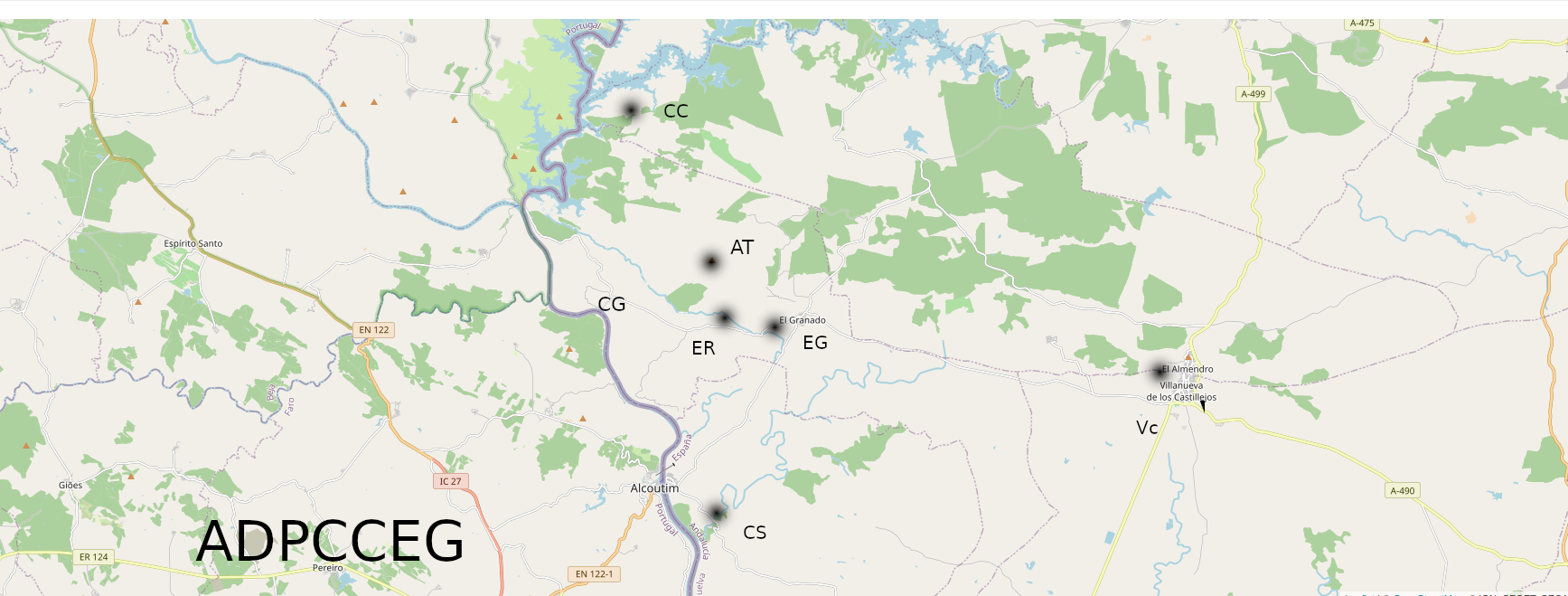 Asi próximos a España, tenemos Corvos, Moreanes, Alves, Fernandes, Picoitos, Pomarao, Mezquita, Santana de Cambas, Sapos, Corte PInto.